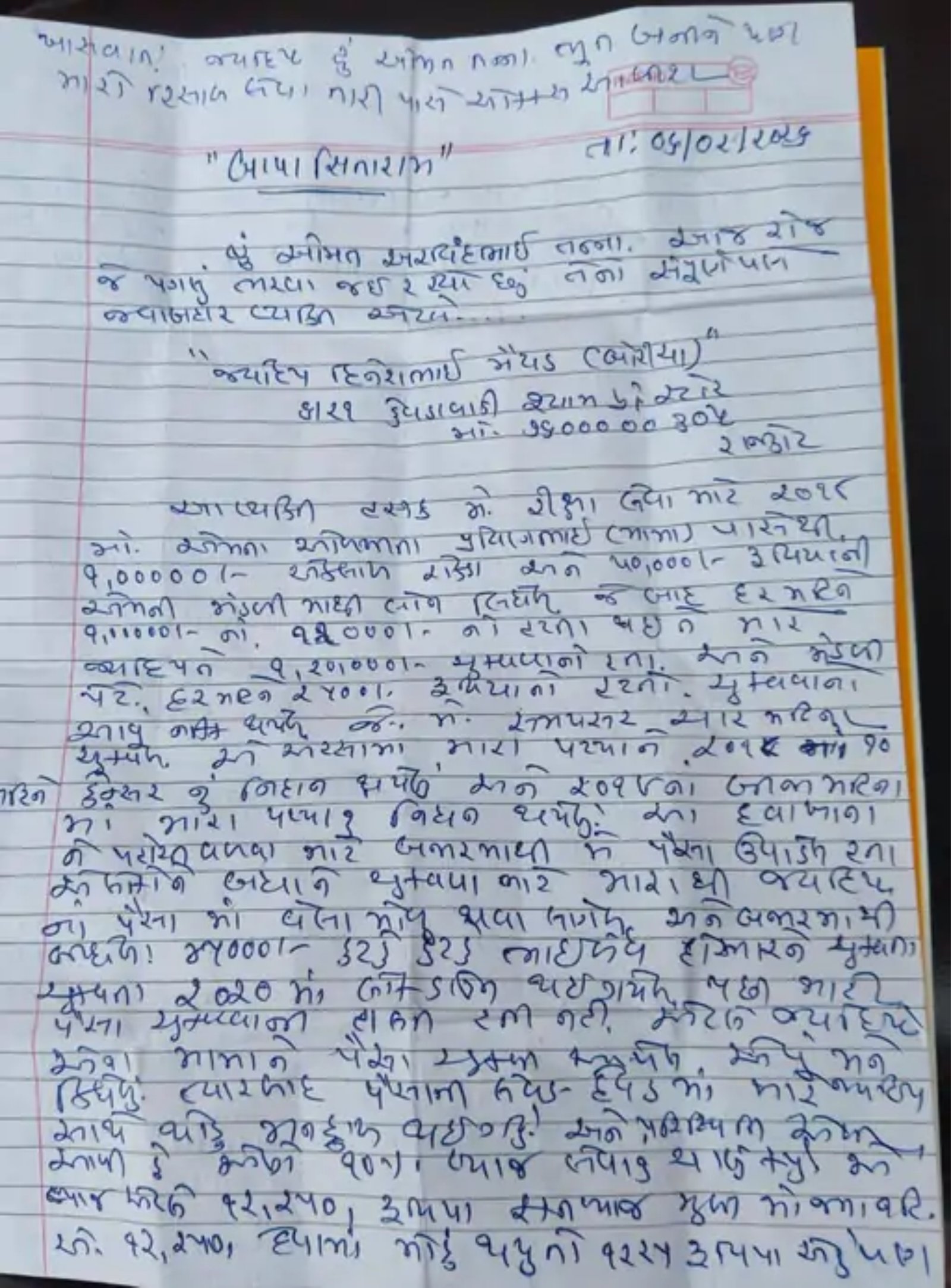 રાજકોટમાં વ્યાજખોરોના ત્રાસથી વધુ એક જીવનનો અંત: સુસાઇડ નોટ અને વીડિયો છોડી યુવકે ઝેરી દવા પી આત્મહત્યા કરી Feb 07, 2026 રાજકોટમાં વ્યાજખોરીનો કહેર યથાવતરાજકોટ શહેરમાં વ્યાજખોરોના ત્રાસથી લોકો માનસિક રીતે તૂટી રહ્યા હોવાના કિસ્સાઓ સતત સામે આવી રહ્યા છે. તાજેતરમાં કેવડાવાડી વિસ્તારમાં રહેતા અને રિક્ષા ચલાવી પરિવારનું ગુજરાન ચલાવતા અમિતભાઈ અરવિંદભાઈ તન્ના (ઉમર 40)એ વ્યાજખોરોના સતત ત્રાસથી કંટાળી ઝેરી દવા પી આત્મહત્યા કરી લેતાં સમગ્ર વિસ્તારમાં શોકની લાગણી ફેલાઈ ગઈ છે. ઘટનાની જાણ થતાં તેમને તાત્કાલિક સારવાર માટે હોસ્પિટલ ખસેડવામાં આવ્યા હતા, જ્યાં ફરજ પરના ડોક્ટરોએ તેમને મૃત જાહેર કર્યા હતા. સુસાઇડ નોટ અને વીડિયો મળી આવ્યોઘટનાની જાણ થતાં ભક્તિનગર પોલીસ સ્થળ પર પહોંચી હતી અને તપાસ દરમિયાન મૃતક પાસેથી એક સુસાઇડ નોટ મળી આવી હતી. આ સુસાઇડ નોટમાં અમિતભાઈએ સ્પષ્ટ રીતે વ્યાજખોર જયદીપ દિનેશભાઈ મૈયડ અને પ્રવિણભાઈ વિરુદ્ધ ગંભીર આક્ષેપો કર્યા છે. આ ઉપરાંત તેમના મોબાઈલમાંથી એક વીડિયો પણ મળ્યો હતો, જેમાં તેઓ મેલડી માતાજીના મંદિરમાં બેસી ભાવુક અવાજમાં કહેતા જોવા મળે છે કે, “હું ભૂત બનીને સાત વર્ષનો હિસાબ લઈશ.” આ વીડિયો અને સુસાઇડ નોટ પોલીસ માટે મહત્વપૂર્ણ પુરાવા બન્યા છે. એક લાખની લોનથી શરૂ થયેલી મુશ્કેલીસુસાઇડ નોટમાં અમિતભાઈએ લખ્યું છે કે વર્ષ 2018માં તેમણે જયદીપના ઓળખીતા પ્રવિણભાઈ ઉર્ફે મામા પાસેથી એક લાખ રૂપિયા રોકડા અને 50 હજાર રૂપિયા મંડળીમાંથી લોન તરીકે લીધા હતા. આ રકમ પર દર મહિને એક લાખના 12 હજાર રૂપિયાનો હપ્તો અને મંડળી માટે 2500 રૂપિયાનું ચુકવણી કરવી પડતી હતી. શરૂઆતના ચાર મહિના સુધી તેમણે નિયમિત હપ્તા ચૂકવ્યા હતા. પિતાની બીમારી અને આર્થિક સંકટઆર્થિક સ્થિતિ ત્યારે બગડી જ્યારે વર્ષ 2018માં અમિતભાઈના પિતાને કેન્સર થયો. સારવારના ભારે ખર્ચ બાદ એક વર્ષમાં પિતાનું અવસાન થતાં ઘરખર્ચ અને જવાબદારીઓ વધી ગઈ. આ સ્થિતિમાં અમિતભાઈને અન્ય લોકો પાસેથી પણ ઉછીના રૂપિયા લેવા પડ્યા, જેના કારણે વ્યાજની ચુકવણી સમયસર થઈ શકી નહોતી. લોકડાઉન બાદ પરિસ્થિતિ વધુ બગડીવર્ષ 2020ના લોકડાઉન દરમિયાન રિક્ષા ધંધો સંપૂર્ણ બંધ થઈ ગયો હતો. આવક ન હોવાના કારણે અમિતભાઈ વ્યાજની રકમ ચૂકવવામાં અસમર્થ બન્યા. ત્યારબાદ વ્યાજખોરોએ મૂળ રકમ ઉપરાંત 10 ટકા વ્યાજ વસૂલવાનું શરૂ કર્યું. અંતે તેમની રિક્ષા પણ લઈ લેવામાં આવી અને સિક્યુરિટી તરીકે આપેલો ચેક બેંકમાં રજૂ કરતાં રિટર્ન થતાં કોર્ટ કેસની કાર્યવાહી શરૂ થઈ. “હું મરી જાઉ તો મને ન્યાય અપાવજો”સુસાઇડ નોટમાં અમિતભાઈએ લખ્યું છે કે, “મેં લીધેલા પૈસા કરતાં વધુ રકમ ચૂકવી દીધી છે, છતાં વધુ પૈસાની માંગ કરવામાં આવે છે.” તેમણે કાયદા, પ્રશાસન અને પોલીસ સમક્ષ સવાલ ઉઠાવ્યો છે કે શ