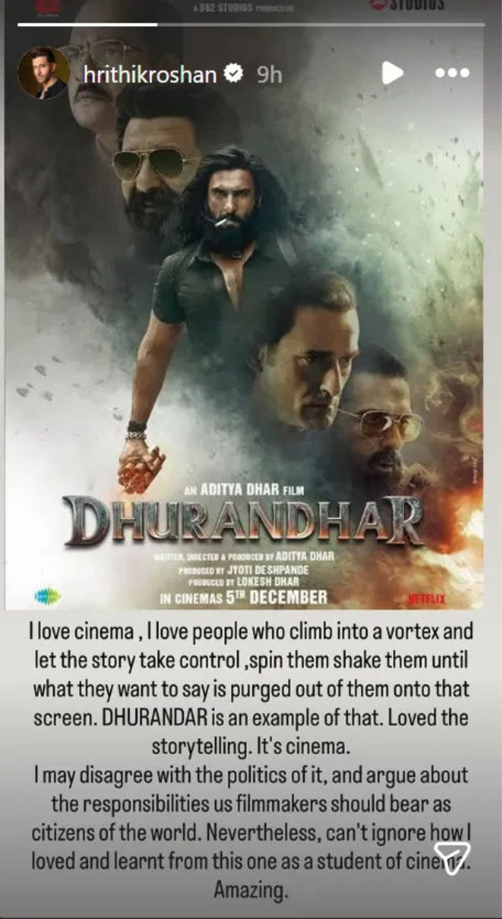 હૃતિક રોશને પહેલા 'ધુરંધર' પર ઉઠાવ્યા સવાલ, પછી ભરપેટ વખાણ કર્યા! લોકોએ ઉડાવી મજાક Dec 11, 2025 રણવીર સિંહ અભિનીત ફિલ્મ ‘ધુરંધર’ બોક્સ ઓફિસ પર ધમાલ મચાવી રહી છે અને દરેક તરફથી પ્રશંસા મેળવી રહી છે, પરંતુ આ ચર્ચાઓ વચ્ચે હૃતિક રોશનની તાજેતરની પ્રતિક્રિયા ખાસ ધ્યાન ખેંચી રહી છે. હૃતિકે ફિલ્મના એક્શન, સ્ટોરીટેલિંગ અને કલાકારોના અભિનયની ખુલ્લેઆમ પ્રશંસા કરી, પરંતુ સાથે જ ફિલ્મના રાજકીય પાસાને લઈને તેણે સવાલ પણ ઉઠાવ્યો છે. આ મિશ્ર પ્રતિક્રિયા સોશિયલ મીડિયા પર વાયરલ બનતા લોકો તેની મજાક પણ ઉડાવી રહ્યા છે અને અનેક મીમ્સ સામે આવ્યા છે.હૃતિક રોશન, જે પોતાની કારકિર્દીમાં અનેક એક્શન અને પોલિટિકલ થ્રિલર ફિલ્મો કરી ચૂક્યો છે, તે સિનેમાના શૈક્ષણિક પાસાઓને લઈને ખૂબ સંવેદનશીલ માનવામાં આવે છે. ‘ધુરંધર’ જોવા બાદ હૃતિકે પોતાના ઈન્સ્ટાગ્રામ પર લાંબી પોસ્ટ મૂકી હતી, જેમાં તેણે ખાસ કરીને ફિલ્મના ગાઢ પ્લૉટ, રજૂઆત અને સ્ટોરીને આગળ ધપાવવાની ટેકનિકોની પ્રશંસા કરી હતી. હૃતિકે લખ્યું કે, “મને સિનેમા ગમે છે. ખાસ કરીને એવી ફિલ્મો જેમાં નિર્માતાઓ પોતાનું બધું જોખમમાં મૂકી, સ્ટોરીને કાબૂમાં રાખી તેને દર્શકો સામે સંપૂર્ણ શક્તિથી રજૂ કરે છે. ‘ધુરંધર’ તેનું ઉત્તમ ઉદાહરણ છે.” પણ આ વખાણની વચ્ચે તેણે ફિલ્મની રાજકીય દિશા પર અસહમતિ દર્શાવી. હૃતિકે લેખિતમાં જણાવ્યું, “હું ફિલ્મની રાજનીતિ સાથે સંપૂર્ણપણે સહમત થઈ શકતો નથી. એક વિશ્વના નાગરિક તરીકે મને લાગે છે કે ફિલ્મમેકર્સ પાસે ચોક્કસ નૈતિક જવાબદારીઓ હોય છે. શું બતાવવું જોઈએ અને કેવી રીતે બતાવવું જોઈએ તે બાબતે ચર્ચા થવી જોઈએ.” તેની આ ટિપ્પણી વાયરલ થતાં કેટલાક લોકોએ તેને ટ્રોલ કરતા કહ્યું કે હૃતિક ફિલ્મની રાજનીતિ નહીં પરંતુ પોતાના અભિનયના રાજકારણમાં વધુ ગૂંચવાયા છે.સાથે જ બીજી તરફ ઘણા દર્શકો અને હૃતિકના ચાહકોએ તેની વાતને સમર્થન આપતા કહ્યું કે કોઈ ફિલ્મની ટેકનિકલ સિદ્ધિઓને વખાણવામાં અને સાથે તેની વિચારધારા પર અસહમતિ રાખવામાં કોઈ ખોટ નથી. પરંતુ સોશિયલ મીડિયા પર મજાકનો માહોલ જ વધારે નજરે પડ્યો.આ પોસ્ટ બાદ હૃતિકે ‘X’ પર બીજી પોસ્ટ શેર કરી, જેમાં તેણે ફિલ્મની સમગ્ર ટીમની વિશેષ પ્રશંસા કરી. તેણે આદિત્ય ધરને “ઝનૂની મેકર” કહેવ્યા, રણવીર સિંહના અભિનયને “શાંતથી લઈને આક્રમક સુધીની અદ્ભુત સફર” ગણાવી. અક્ષય ખન્નાને તેણે ‘ઓલટાઈમ ફેવરિટ પરફોર્મર’ ગણાવ્યા અને આર. માધવનના અભિનયમાં દેખાતી ગ્રેસ અને ડેપ્થની વખાણ કરી.પણ સૌથી વધુ ચર્ચાસ્પદ બની તેની રાકેશ બેદીને અપાતી પ્રશંસા, જેમાં હૃતિકે લખ્યું, “રાકેશ બેદી, તમે તો ફાડીને રાખી દીધું! અદ્ભુત અભિનય!” આ લાઈન સોશિયલ મીડિયા પર વધુ વાયરલ બની રહી છે.‘ધુરંધર’ને દર્શકોની સાથે ફિલ્મ સેલિબ્રિટીઝ તરફથી પણ જોરદાર પ્રતિસાદ મ